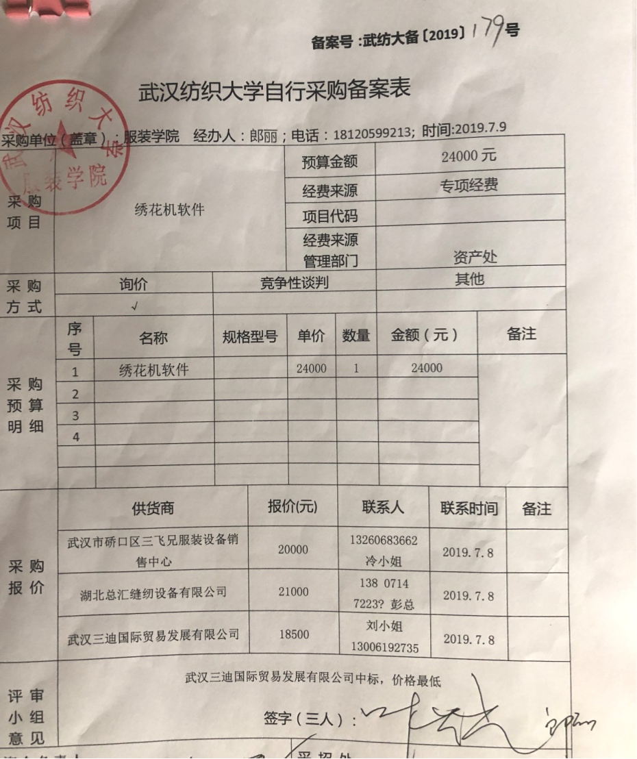 关于非遗中心绣花机软件的采购公示