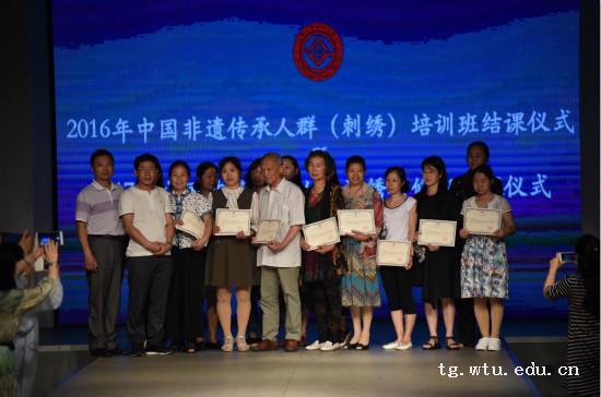 2016年11月13日,为期一个月的2016非遗传承人群(刺绣)培训班,培训了来自武汉、荆州、大冶、红安、阳新、神农架等地的刺绣学员60人。经过刻苦学习取得了丰硕的成果,作品以动态和静态两种方式进行展示。禁漫天堂副校长罗锦银致欢迎词,介绍了禁漫天堂作为“研培计划”的院校,要尊重传统、尊重传承人,与他们平等交流。非遗进校园,可以激活年轻一代传承人群的文化自信和文化自觉,期望在武纺参加研修的传承人群,都能成为非遗传承的坚实力量,带动一方文化的发展。彭肖肖作为2016届学员代表发言说,“通过武纺非遗中心为学员精心设计安排的课程,使学员们得到了系统的理论指导,更深层次地了解到非遗是什么,刺绣是什么以及如何做到传承。希望在今后的传承过程中,做到学以致用”。