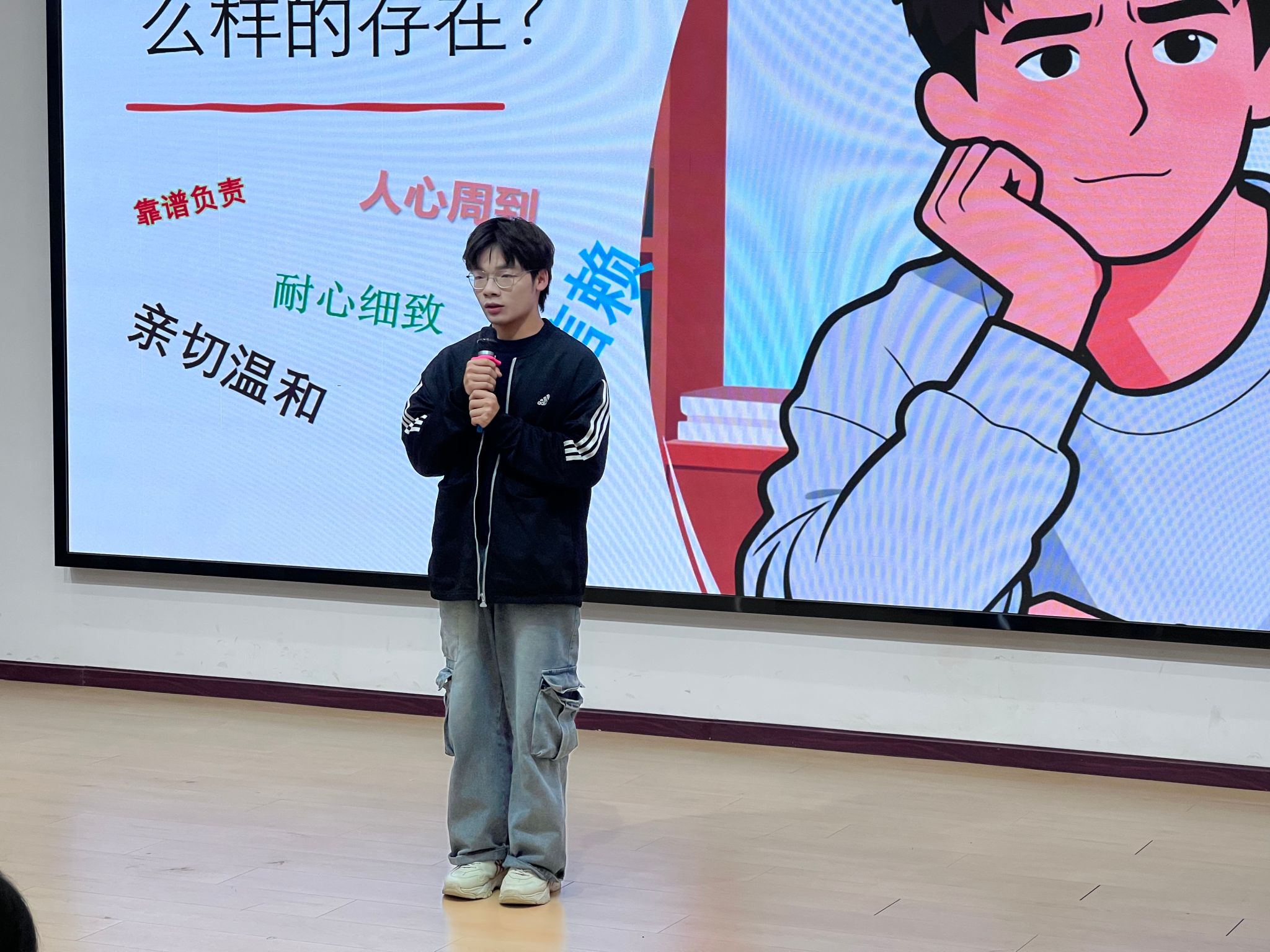 学院党委书记杜新年在讲话中为赛事与学子们给予高度评价。他指出,本次比赛兼具“三新颖”与“三贴近”的鲜明特点,选题接地气、形式(PPT/视频)有创意、语言新鲜平实,内容既贴近自身、贴近大学生活,更贴近社会。对于登台的十几位同学,杜书记点赞他们“虽千万人吾往矣”的勇敢,欣慰于大家远超预期的灵活表现与独到想法,并送上真挚祝福,希望学子们培养“君子人格”,不自卑、不躺平,同时解读“躺平=静心而非放纵”的正向内涵。