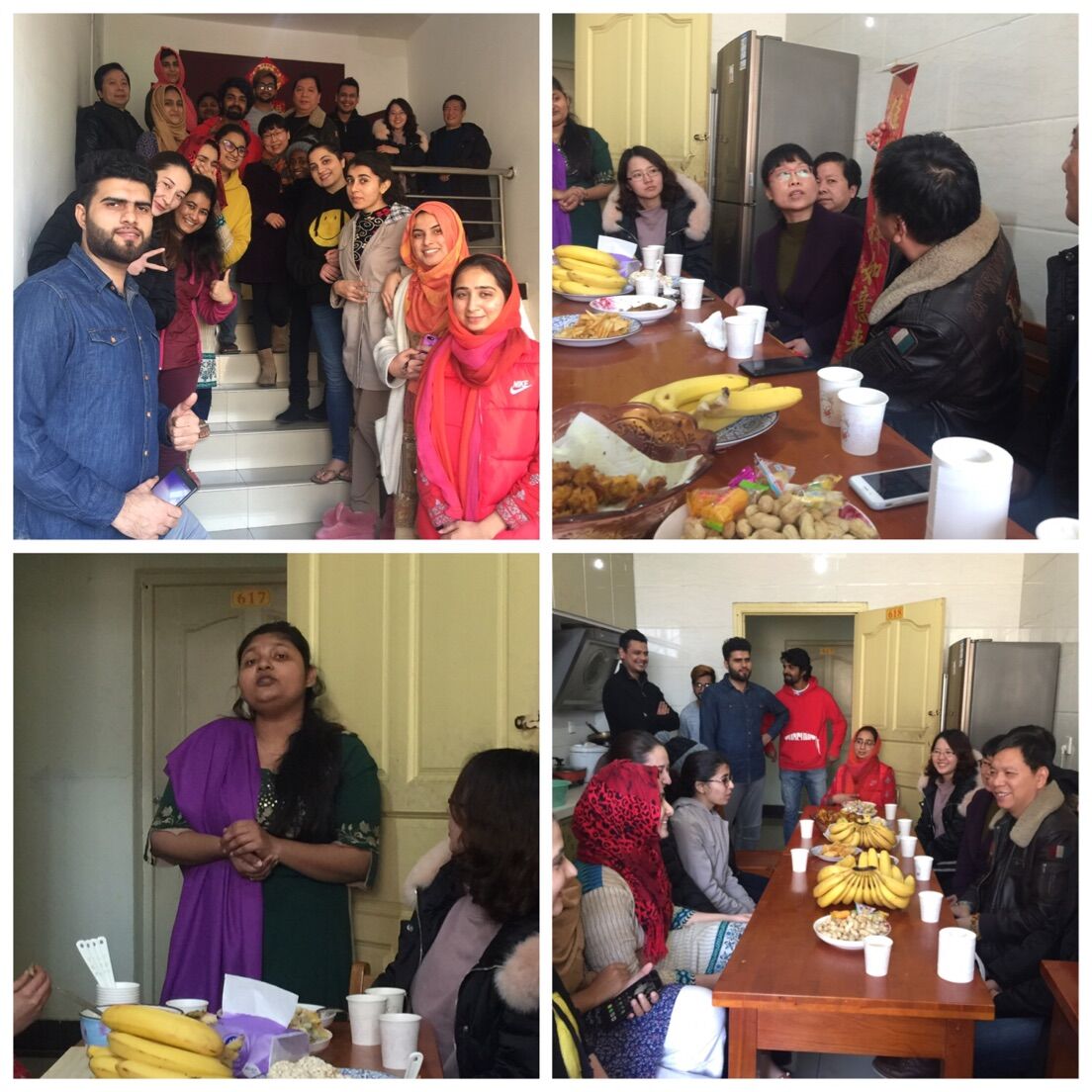 南湖校区8栋留学生公寓,学院领导与留学生们欢聚一堂,共庆佳节。陶辉院长代表学院详细的询问了在校留学生的生活和学习情况,鼓励大家利用寒假做好学业生涯的总结和规划,向留学生们送去诚挚的节日问候。来自不同国家不同地区的留学生精心烹制地道家乡美食,饱含热情演唱极具异域风情的家乡歌曲,现场气氛其乐融融。最后熊兆飞书记向留学生介绍了我国农历新年的习俗,期望他们了解和传播中国传统优良文化,并和留学生一起贴对联,让留学生感受到国际大家庭的温暖。