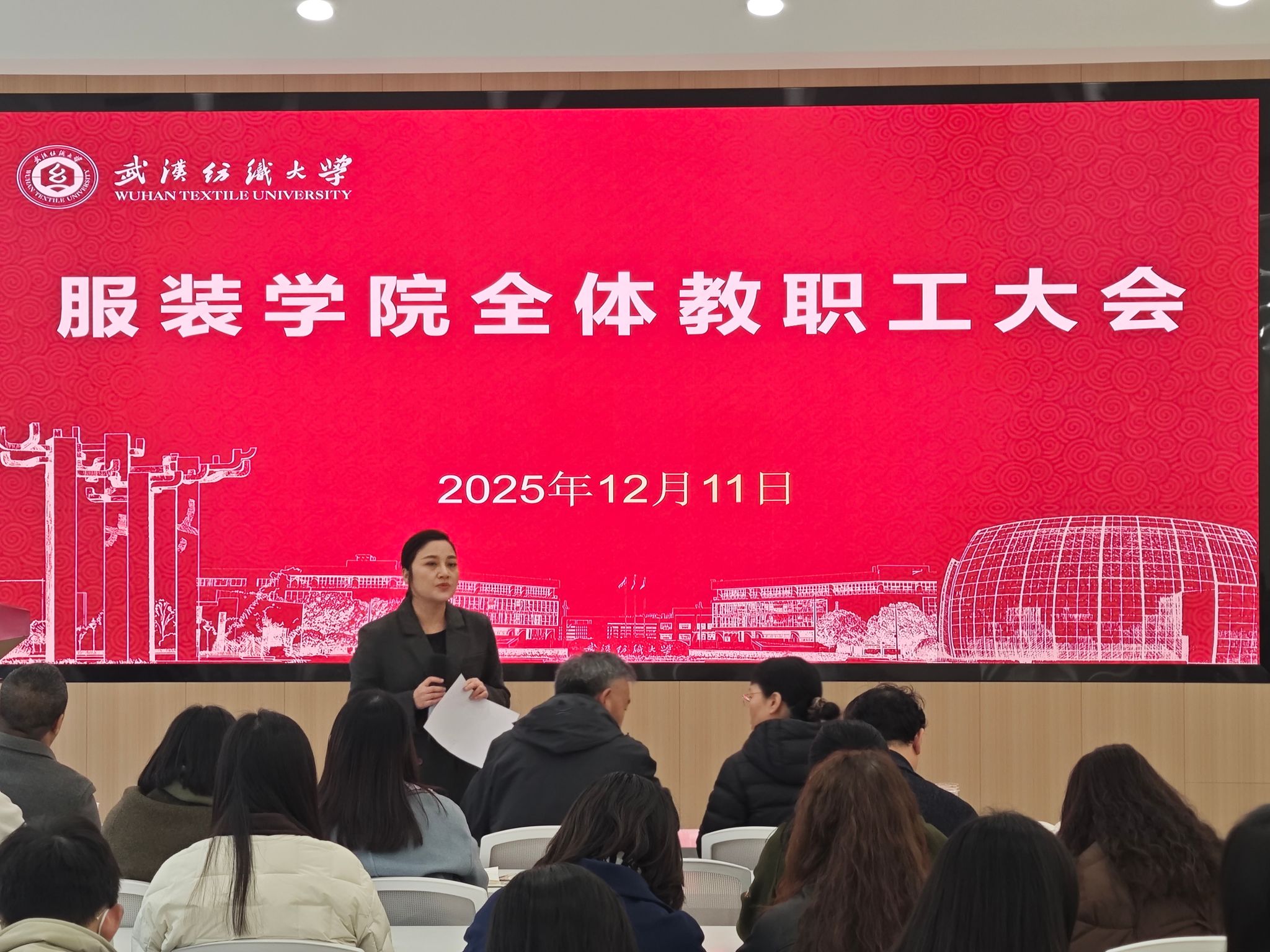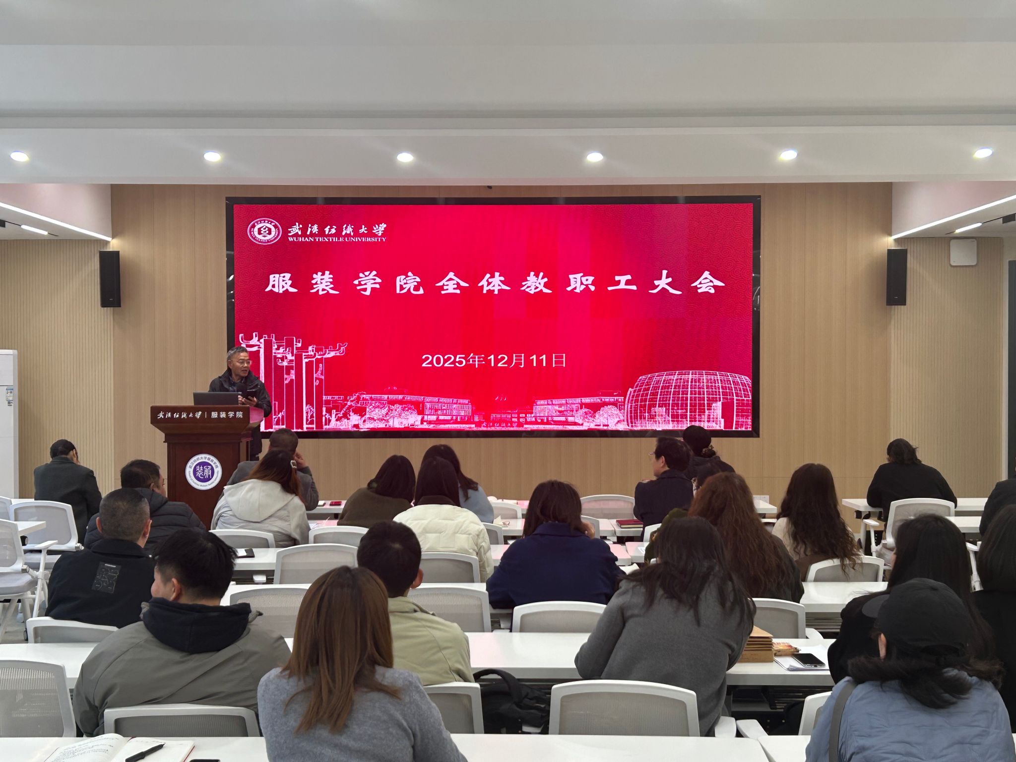 在综合楼二楼学术报告厅召开全院教职工大会。学院领导班子成员及全体教职工参会,会议由院长陶辉主持,围绕师德师风建设、教学科研、人才培养等核心工作,系统部署近期重点任务,进一步统一思想、压实责任,为学院高质量发展和学校“双一流”建设夯实基础。