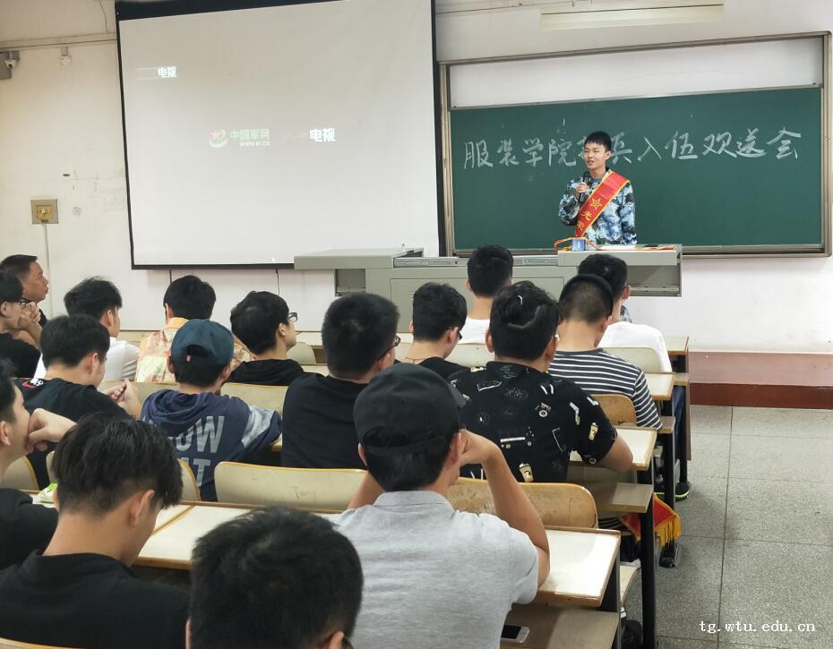 共有服设21401班马闫、服贸11501班魏强、服工11701班陈弓等3名男生参军入伍,他们将暂别校园、投身军营,把爱国之心化为报国之行,为广大有志青年树立了新的榜样。欢送大会在雄壮的国歌声中拉开帷幕。与会人员首先感受了《2018征兵宣传片》的震撼场面,短片展示我国日益强大的国防实力,重新点燃了热血男儿的军营梦。