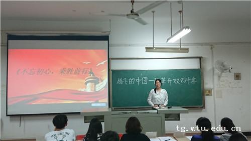 最后,遆书记进行了总结点评,她讲到,习近平总书记说过:“人的一生只有一次青春。现在,青春是用来奋斗的;将来,青春是用来回忆的。”只有在年轻的时候奋斗过、拼搏过、奉献过,书写过人生的精彩、攀登过人生的高峰,我们才能在以后回忆的时候,自信地道一句:“青春无悔”。她鼓励同学们不忘初心,砥砺前行,共同迎接改革开放40周年的到来,共同铸就中国更加辉煌的未来!(通讯员 尹佳玉)