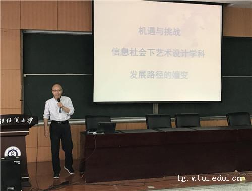 熊兆飞对吴宏教授与李超德教授的到来表示热烈欢迎,并向在场的师生隆重介绍两位时尚设计界大咖。深圳大学艺术设计学院院长吴洪教授首先开讲,吴教授以《机遇与挑战——信息社会下艺术设计学科发展路径的嬗变》为题,讲述了人类从农业文明发展到现在的历史进程中,艺术形式与生产的联系;提出信息化带来的改变,认为设计业由边缘化自中心转变;最后吴教授从信息社会的特征,展示了设计结构变化的过程。随后,李超德的演讲则更加关注艺术教育,他用英国圣马丁学院的话:“我们不教授什么,只教授生活方式。”与在座师生一起分享艺术教育的内核,并很好的诠释了教育除了智力因素,还有非智力因素也非常重要;最后,李教授阐述了时尚、流行与艺术教育的联系,提出时尚是一种生活方式,流行是善意的结果,是传递艺术文化教育的价值观。