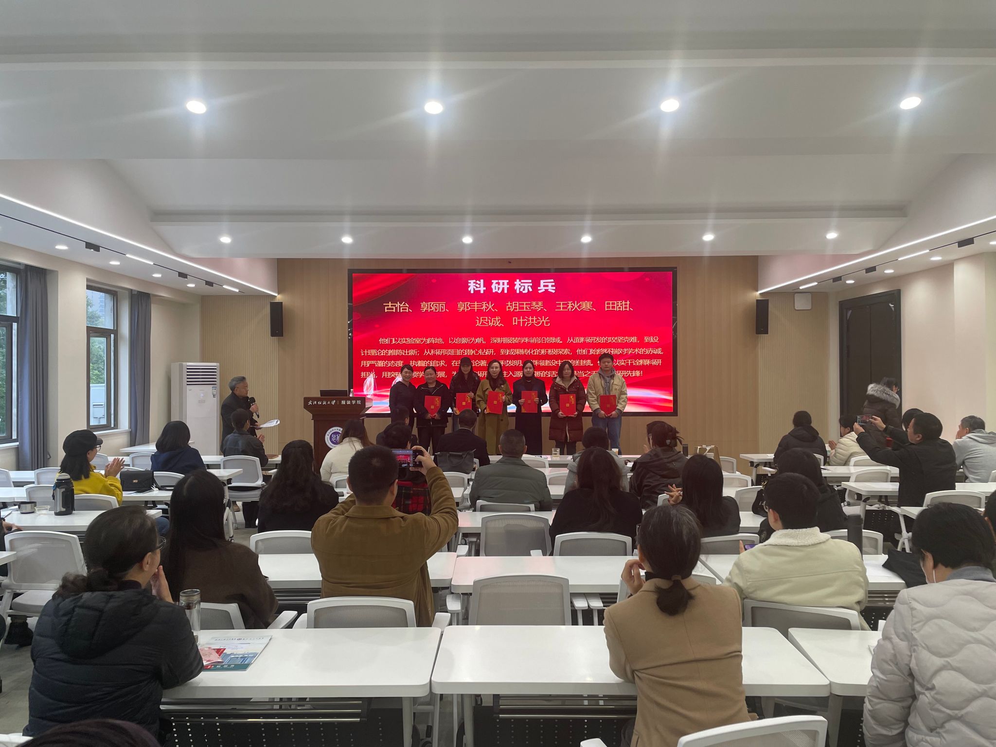 (院长陶辉为学院科研标兵颁奖)