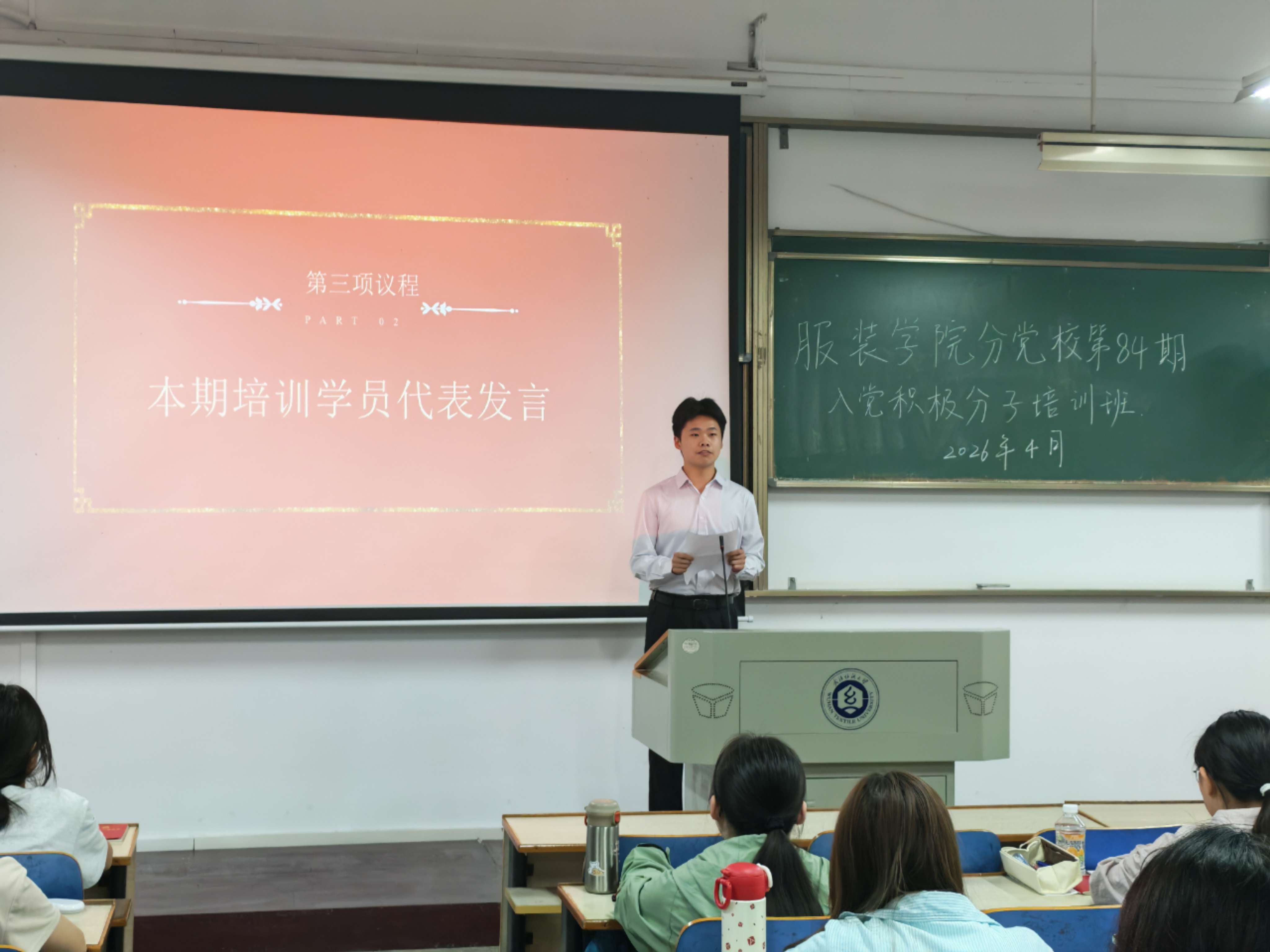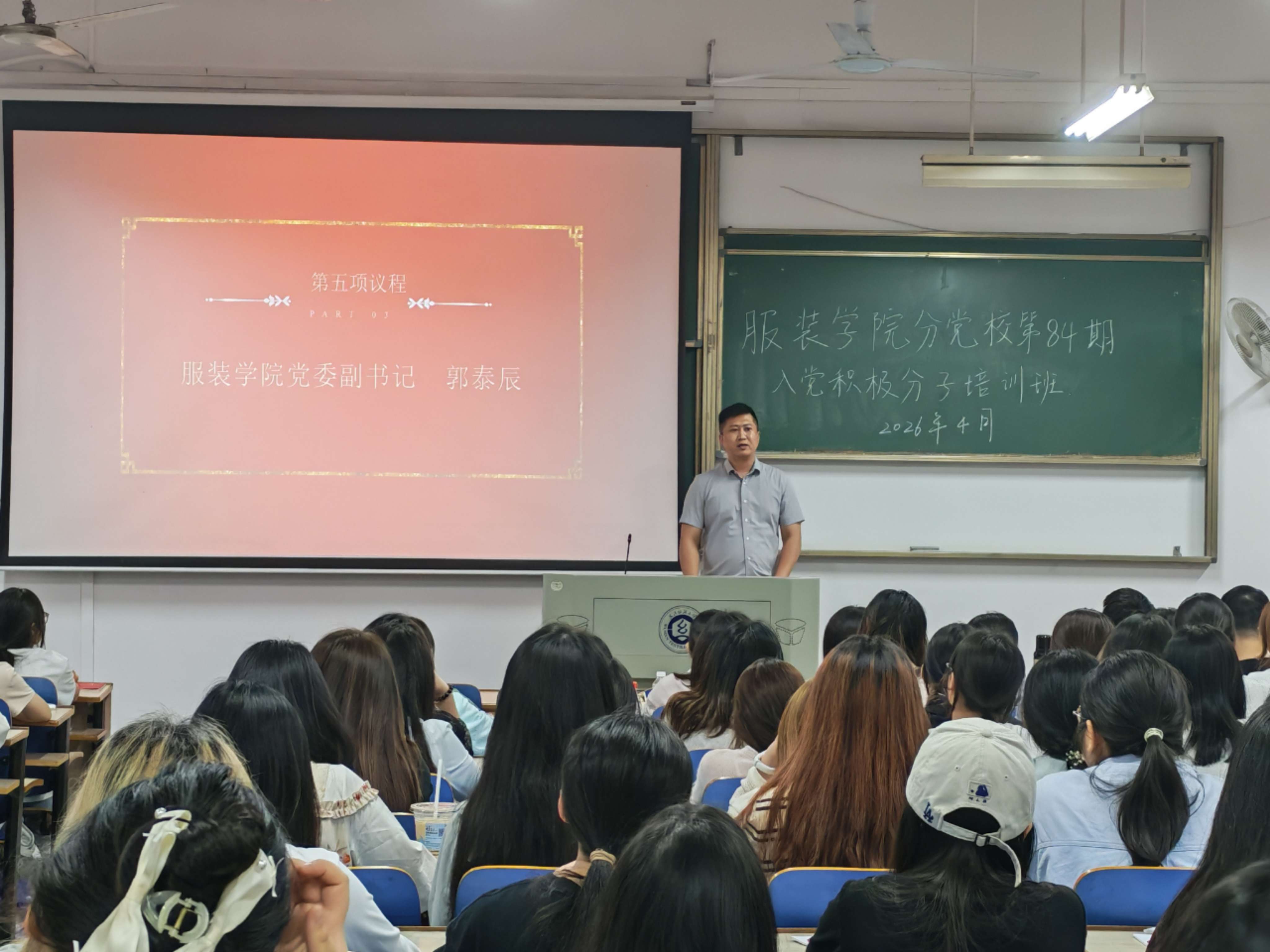 活动期间,学院党委副书记郭泰辰在动员讲话中,对主动向党组织靠拢、参加本次培训的各位学员致以热烈的欢迎并表达殷切期望。他指出,入党积极分子是党的后备力量,是学院发展的未来中坚,作为服装专业的青年学子,大家既要扎实练就专业本领,深耕服饰文化传承,锤炼精益求精的工匠精神,将专业所长与国家发展、文化自信建设紧密结合;更要坚定理想信念,牢记初心使命,深刻领悟党的宗旨内涵,自觉用党的创新理论武装头脑、指导实践。他强调,全体学员要倍加珍惜此次培训机会,认真钻研党的理论知识,进一步端正入党动机,严格遵守培训纪律,立足专业实际,将红色基因融入设计创作,把个人理想融入党和人民的事业,在勤学苦练中锤炼政治品格、增长过硬才干,努力成为政治坚定、专业扎实、作风优良的新时代青年先锋。