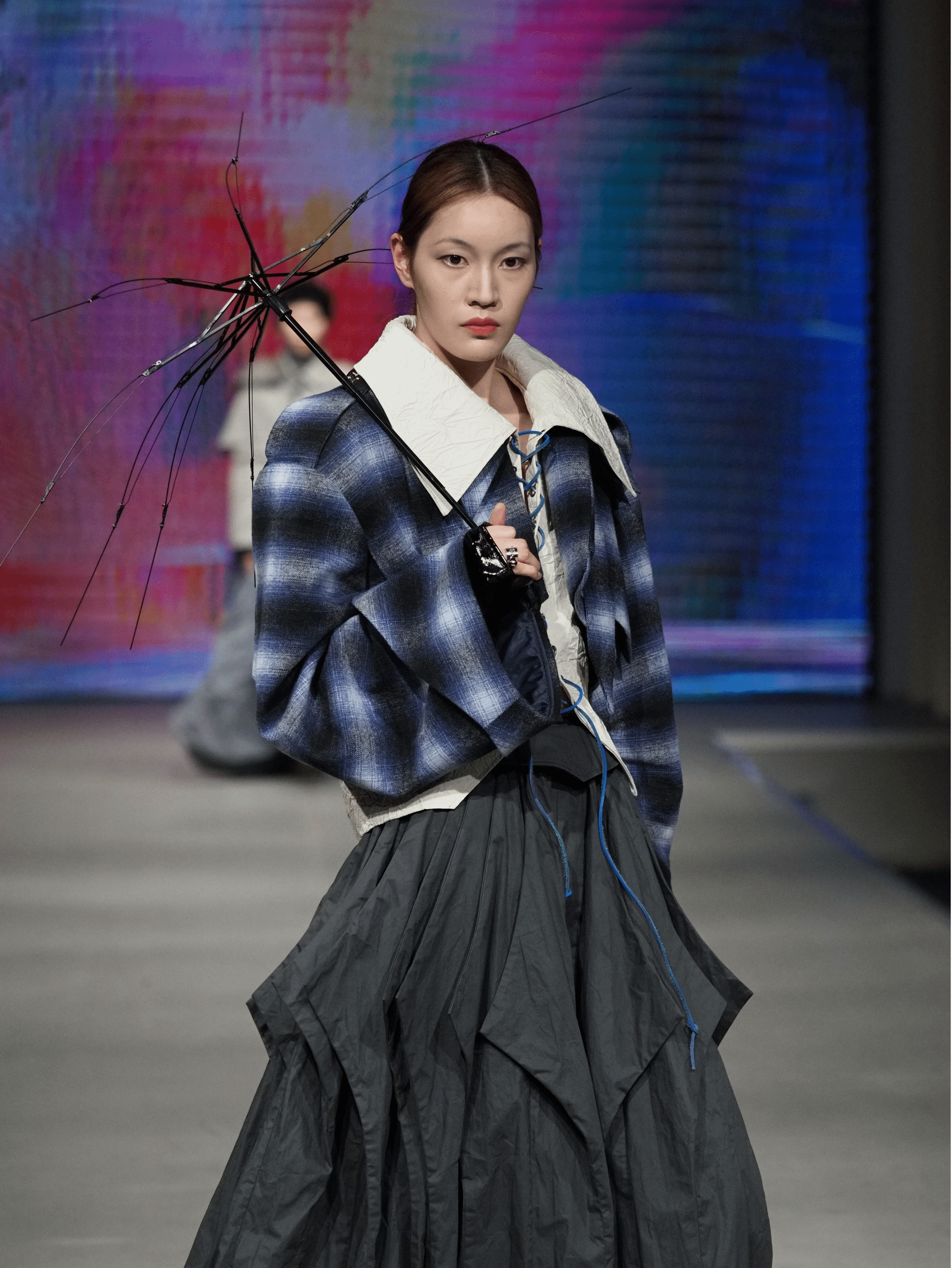 本届时装周既是学院人才培养、学科建设的“成绩单”,更是青年设计师们向时代交出的创意答卷。当前正值学校“学科建设与干部素质提升年”,也是争创“双一流”、突破纺织一流学科的关键时期,学院将以传统文化为根基,以数字科技为支撑,以可持续发展为方向,深耕非遗活化、AI设计等前沿领域,扎实推进产教融合,把原创、科技、绿色的理念融入教学全过程,为中国时尚教育和纺织产业升级出一份力。
