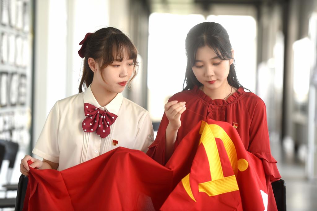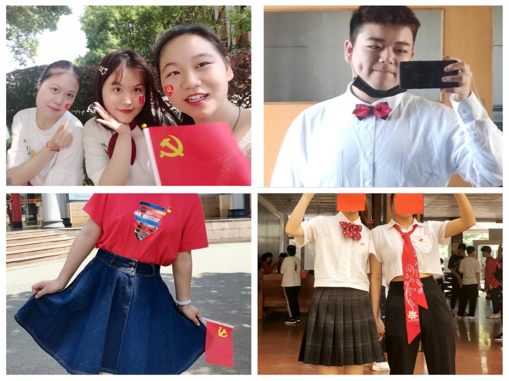 活动现场贯穿着丰富的红色元素,刺绣的党旗、历史厚重的汉服、温婉大气的旗袍、仙气飘飘的红裙子、带有纺大LOGO的红窗花、带有节日气息的红风车、红领结..........活动设计充分展现服装专业元素,利用服饰搭配、服装展示、智能服装大数据等方式充分挖掘红色育人资源,使红色基因渗入血液、融入血脉、浸入心扉,落地生根,服装青年学子以这样特有的方式表达对党的赤诚之心。