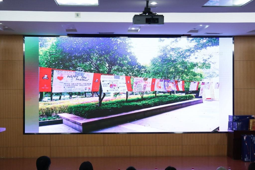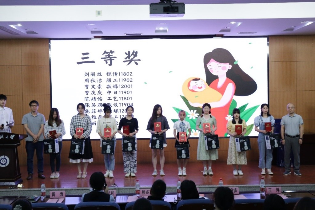 颁奖环节,主持人宣布本次比赛的一、二、三等奖,以及“学团小微”微信公众号线上投票产生的“最佳人气奖”。获奖同学代表施菲婷、宋雨菲、王自强分别分享了他们和母亲的故事、创作心得和设计灵感。