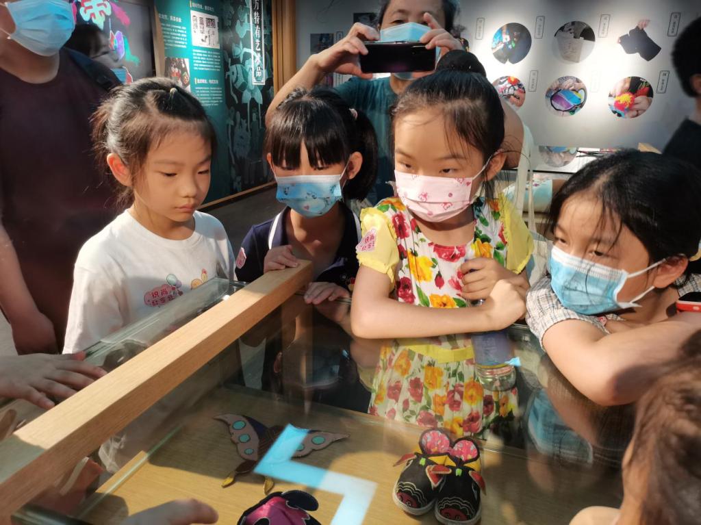 7月7日,“织尚”夏令营首先在南湖校区纺织非遗馆举行了开班活动,在纺织非遗馆老师的带领下,小朋友们参观了各类非物质文化遗产。了解汉绣技术,欣赏汉绣作品,每一位小朋友都被其中深厚的传统文化底蕴所感染,对这些非物质文化遗产产生了极大的兴趣。