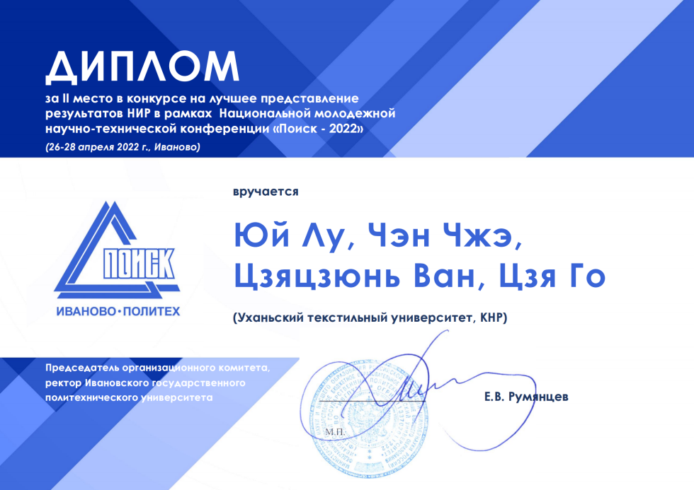 4月26-28日,第25届国际青年科学技术大会“ПОИСК 2022”在俄罗斯伊万诺沃国立理工大学举行,服装学院三名本科生应邀参会并作全英文主题报告。禁漫天堂