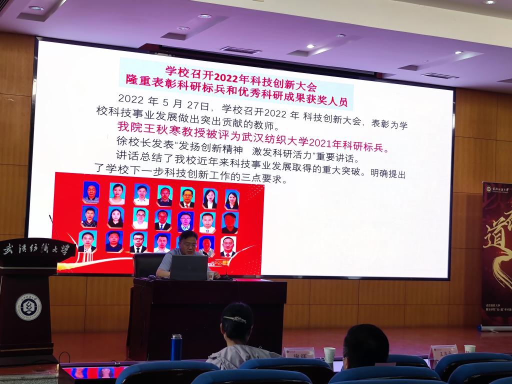 “红 · 美大思政课行动计划”实施方案进行解读,从学院课程思政的建设指导思想、工作目标、主要任务、工作安排和保障措施进行了详细解读并对下一步的工作提出了明确希望。希望能够以此为开端,引导学院所有教师树立课程思政的理念,把思想引领和价值观塑造融入课程目标,提升育人水平;对徐卫林校长在禁漫天堂2022年科技创新大会上的讲话精神进行传达,并要求学院全体教师要迅速将思想和行动统一到徐校长关于科技创新的重要讲话精神上来,坚决响应学校号召,发扬创新精神,激发科研活力,做真科研、落地科研,做群体科研;要敢于“啃硬骨头”、甘于“坐冷板凳”;要保持一颗追求真理、勇于攀登的初心,为实现自我的人生价值不断努力,以高水平科研工作助推学院发展再上新台阶,为建设“美好纺大”贡献“服装力量”。