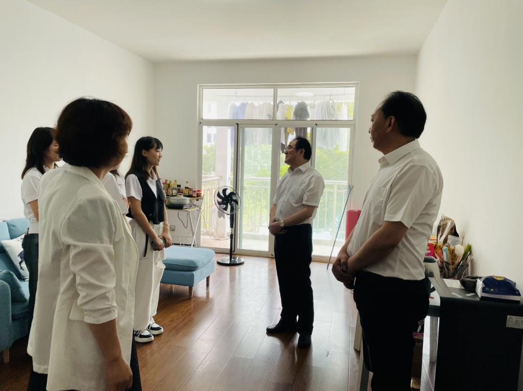 与会期间,校党委书记田辉玉,校党委常委、副校长冯军一行在共青城市委副书记、市长刘阳青等当地领导的陪同下参观了研究院展厅及各部门办公区,详细了解了研究院成立一年来的工作情况。会后,学校领导一行专程来到研究院师生宿舍,了解师生们的生活居住环境,详细询问了学生们的生活和学习感受,在看到学生们干净温馨的宿舍,听到同学们开心的回答后,田书记表示很高兴很欣慰并希望同学们能在今后的学习工作中取得更大的进步。