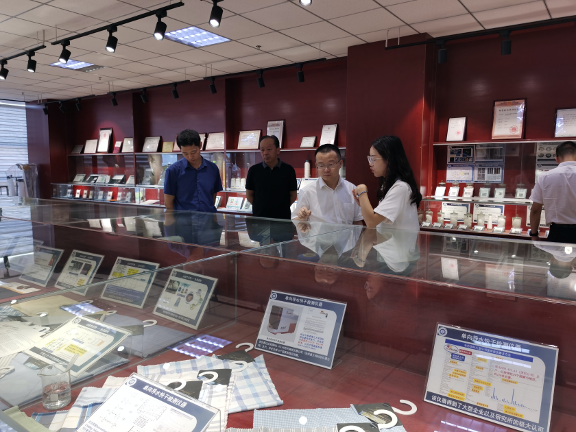 会谈前,刘阳青一行实地参观了国家重点实验室及纺织科技展厅,对我校在纺织行业取得的成果给予了高度的评价和关注。