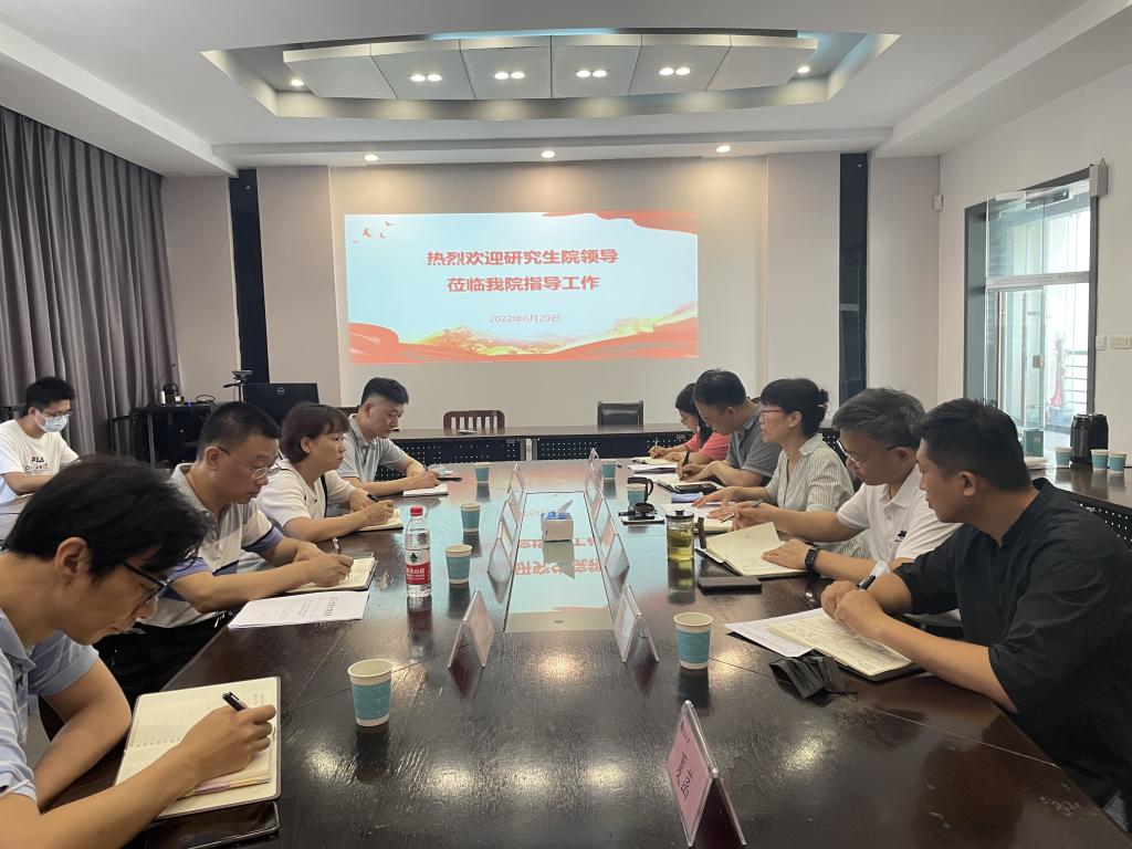 会上,陶辉院长代表学院对研究生院一行的莅临表示欢迎,并介绍了学院学硕和专硕培养、研究生工作站建设、导师队伍建设、留学生培养以及研究生学科竞赛等基本情况,同时就研究生培养工作中遇到的问题提出意见和建议。杜新年书记感谢学校对学院研究生教育工作的支持,并就学院研究生党建与思想政治教育情况进行了介绍。