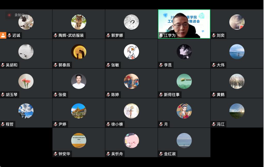 组织了工程专业认证线上推进会,学院杜新年书记,陶辉院长,江学为副院长、郭泰辰副书记、服装设计与工程专业全体教师和相关人员参加了会议,会议由陶辉院长主持。