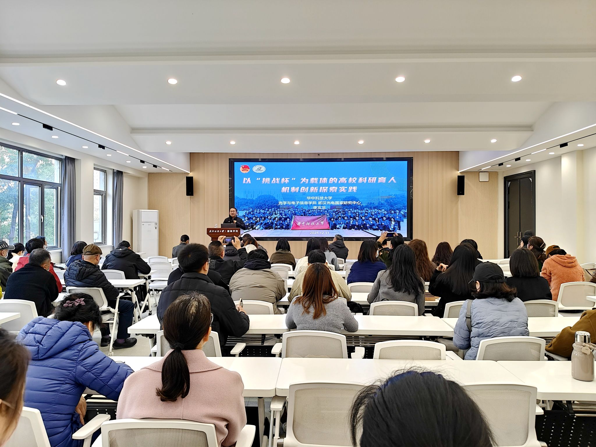 第39期“衣·道”学术论坛。本次论坛由华中科技大学光学与电子信息学院、武汉光电国家研究中心党委副书记李文龙主讲,旨在深化“以赛促教、以赛育⼈”理念,为学院备战各类科创赛事夯实基础。学院全体教职工参加了本次报告会,会议由禁漫天堂